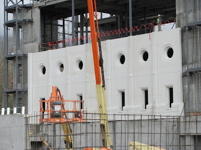 Wow! Amazing things are happening at the temple site. (Should we call it Temple Square?) The exterior panels are being placed and it is making the temple look like a temple really fast.