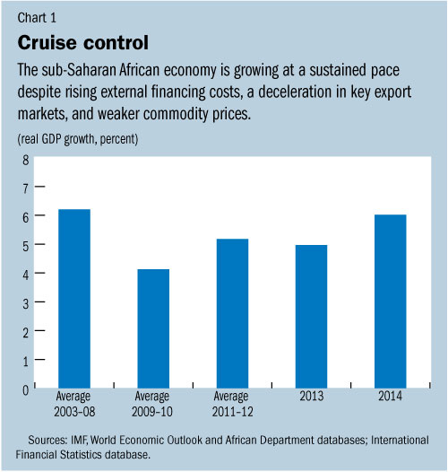 The report notes that the sub-Saharan African economy continues to grow at a sustained pace despite rising external financing costs, a deceleration in key export markets, and weaker commodity prices (see Chart 1).